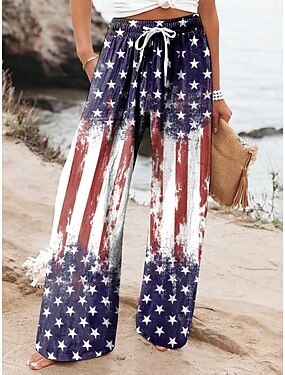 Függetlenség Napja Patrióta Női Széles Lábú Chinos Bajnok Nadrág Strand Rövidnadrág Üdülés Vintage Divat Teljes Hosszú Magas Derékú Nadrág Grafikus Zászló Zászló Nyomtatás Mikrorugalmas Hétköznapi