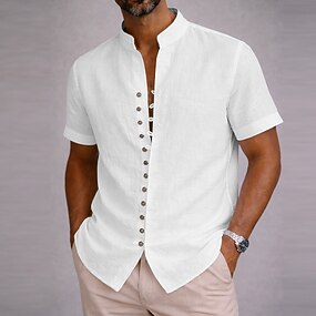 Férfi Ing Vászon ing Alkalmi ing Gombos póló Pamut póló Sima Vakáció Utca Fekete Fehér Khakizöld Világoskék Rövid ujjú Álló gallér Nyár Ruházat Zseb