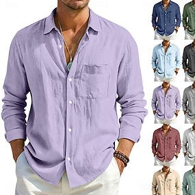 Férfi Ing Vászon ing Nyári póló Strandruházat Gombos póló Sima Vakáció Hétköznapi Fehér Arcpír rózsaszín Lóhere Khakizöld Hosszú ujj Térfogatcsökkenés Nyár Tavasz Ruházat