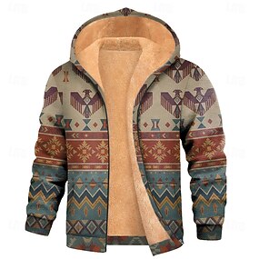 Férfi Törzsi Báránybunda Kapucnis felsőrész Jakna Pulóver Etno Klasszikus Vintage Retro Terített nyak Szabadtéri Kemping Medence Barna Becipzároz Ősz Tél Tervező S M L XL 2XL 3XL