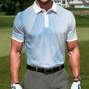 Férfi Póló Hétköznapi Sport Térfogatcsökkenés Rövid ujjú Divat Szabadidős Geometriai Golf 3D nyomtatás Gombok Nyár Tókék Medence Égszínkék Póló