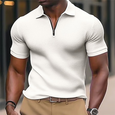 Férfi Gofris pólóing Zip Polo Szabadtéri Sport Hajtóka Negyed irányítószám Rövid ujjú Divat Modern Sima Cipzár Nyár Normál Fehér Gofris pólóing