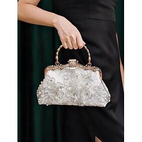 elegáns fehér csipkés estélyi kézitáska gyöngy- és virágdíszítéssel – stílusos menyasszonyi vagy parti kiegészítő nőknek fekete fehér