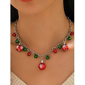 Női karácsonyi ötvözet nyaklánc piros és zöld harangokkal, hópehely díszítéssel, tökéletes ünnepi divathoz és ajándékozáshoz