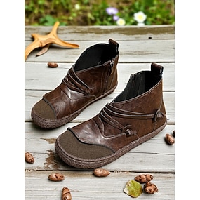 női vintage kávébarna műbőr bokacsizma oldalsó cipzárral – kényelmes bokacsizma hétköznapi viseletre, szabadtéri sétákra és mindennapi öltözékre