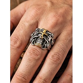 Férfi rozsdamentes acél gótikus koponyagyűrű, több méretű motoros punk gyűrű virágos részletekkel, merész divatékszer hétköznapi viseletre, utazáshoz, nyaraláshoz és halloweeni stílushoz