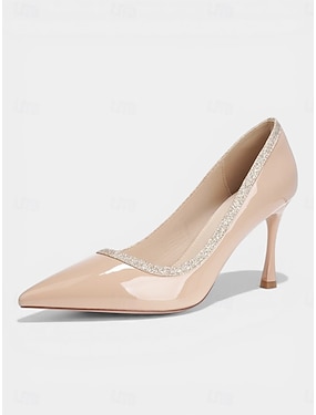 női nude lakkbőr hegyes orrú, strasszos díszítésű cicasarkú cipők koktélpartira, esküvőre &esti események