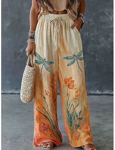 Női Széles lábszár Pamutszövet nadrág Nadrág Háromnegyedes nadrágok Szabadság Szüret Alap Teljes hossz Magas derék Virágos Grafika Absztrakt Elasztikus derékpánt Nyomtatott kellemes Mokaszinok