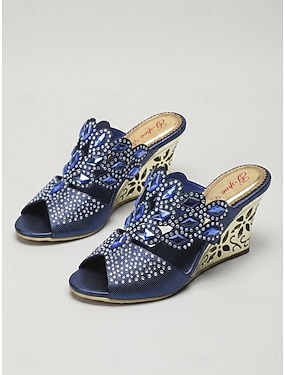 női kék díszes ékszandál, nyitott orrú, elegáns ruhacipő a menyasszony anyjának, kerti esküvő &hivatalos események
