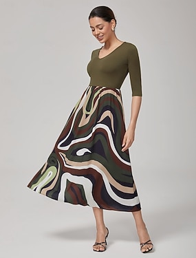 bő virágmintás őszi legénynyakú napi alkalmi térdig érő ruha