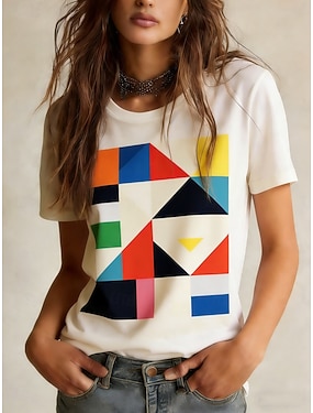 Női Póló Tee Top Nyomtatott Grafika Mértani Stílusos Klasszikus Alkalmi Rövid ujjú Terített nyak Normál felsők Napi Sport Alkalmi Fehér Nyár Tavasz