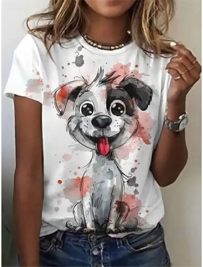 Női Póló Nyomtatott Grafika Állat Kutya Szüret Stílusos Klasszikus Rövid ujjú Terített nyak Kerek Normál felsők Napi Hétvége Fehér Nyár Tavasz Ősz Tél
