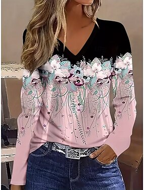 Női Póló Nyomtatott Ombre Grafika Színátmenet Szüret Stílusos Klasszikus Hosszú ujj V-alakú Normál felsők Napi Hétvége Medence Nyár Tavasz