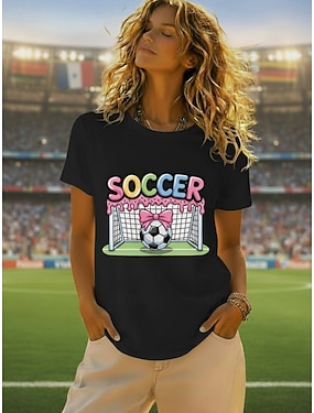 Női Póló Tee Top Nyomtatott Grafika Futball Stílusos Klasszikus Alkalmi Rövid ujjú Terített nyak Normál felsők Napi Sport Alkalmi Fekete Fehér Lóhere Szürke Nyár Tavasz