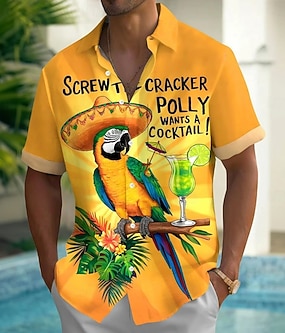 Férfi Papagáj Vicces szleng Trópusi növények Hawaii ing Gombos póló Aloha ing Rövid ujjú Hawaii Hétköznapi Vakáció Nyár Tavasz Térfogatcsökkenés 3D nyomtatás galléros ingek Első egy zseb Medence
