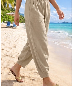 Női Nyári nadrág 100% pamuk Bő nadrág Hárem nadrág Kényelmes Bokáig érő Természetes Tömör szín Zseb Rugalmas derék Hétköznapi Fekete Fehér Katonai zöld Sötét tengerészkék Nyár Tavasz Ősz