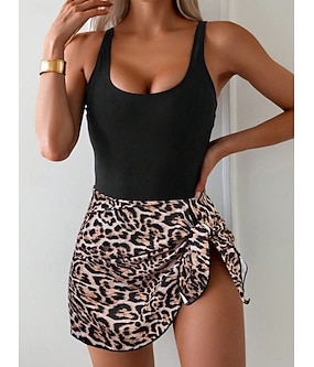 Női Egyrészes fürdőruha Leopárd Monokini Ruha Hasellenőrző Magas derék Karcsú Nyitott nyaralás Tengerparti viselet Virágos Zebra mintás U nyakú Ujjatlan Fürdőruha