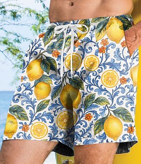 Férfi Gyümölcs Citrom Trópusi növények Úszónadrágok Deszkás short Közepes csípő Utcai sikk Hawaii Vakáció Oldalzsebek Hálós bélés Elasztikus húzózsinóros derékrész Tervező Ruházat