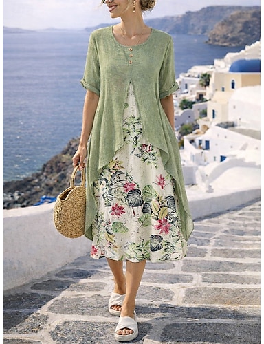 Női Maxiruha Boho ruha Váltó ruha Nyári ruha Vászon ruha Csehország Szabadság Etno Tengerpart Szabadság Randi Laza öltözet Grafika Absztrakt Tropikus Háromnegyedes V-alakú Medence Nyár Tavasz