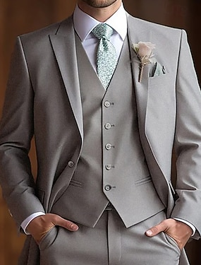 Férfi Esküvő Parti ruhák Világos szürke Divat Üzlet Egyszínű Standard 3 részes készlet Egysoros egy gombos