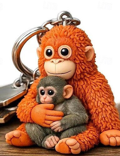 Punch Monkey Meme Ölelkező 3D Gyanta Kulcstartó Aranyos Majom Meme Kulcskarikás Medál Állatbarát Ajándék Vicces Táskadísz Kulcstartó Kulcsokhoz Hátizsákhoz vagy Autó Kulcsokhoz