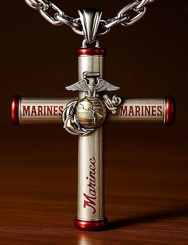 Amerikai katonai kereszt nyaklánc férfiaknak, USMC hazafias emlékmedál, soha el nem felejtett emléknapi gravírozott kereszt amerikai zászló díszítéssel, tisztelgő ékszer ajándék veteránoknak, elesett