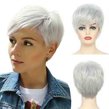 rövid, egyenes pixie szabású paróka frufruval szintetikus paróka kezdőknek barátságos hőálló