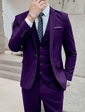 Férfi Esküvő Parti ruhák Arcpír rózsaszín Bíbor Divat Üzlet Egyszínű Standard 3 részes készlet Egysoros két gombos