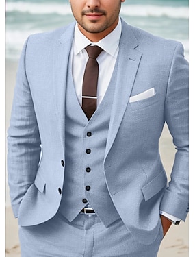 Férfi Esküvő Vászonruhák Hasított rever Égszínkék Khakizöld Egyszínű Szabott 3 részes készlet Egysoros két gombos