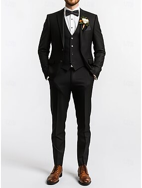 Férfi Esküvő Parti Esküvői öltönyök Hasított rever Fekete Előírásos Egyszínű Karcsúsított 3 részes készlet