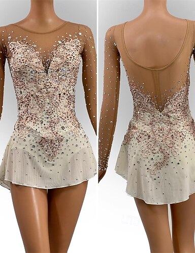 Kűrruha Női Lány Klizanje na ledu Ruhák Világosbarna Kollázs Nyissa meg a Vissza elemet Háló Nagy rugalmasságú Edzés Verseny Kűrruhák Klasszikus Kristály / Strassz Ujjatlan Jégkorcsolyázás