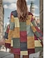 Női Blézer Szélbiztos Melegen tartani Kollázs Zseb Színes Nyitott homlok Modern Bohém Vintage Mértani Hétköznapi Napi Alkalmi / Napi Rövid Kerek nyakkivágás Normál Hosszú ujj Felsőruházat Sárga Rubin