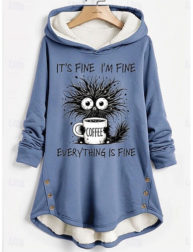 Női Pulóver Hoodie pulóver Grafika Cica Szöveg Alkalmi Comfrt Hosszú ujj Kapucni Hosszú felsők Utca Hétköznapi Nyomtatott Sötétrózsaszín Medence Szürke Ősz Tél