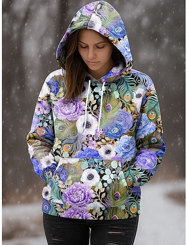 Női Pulóver Hoodie pulóver Virágos Grafika Alkalmi Hosszú ujj Kapucni Normál felsők Party estélyi viselet Utca Hétköznapi Arcpír rózsaszín Bíbor Narancssárga Lóhere Tavasz Ősz Tél