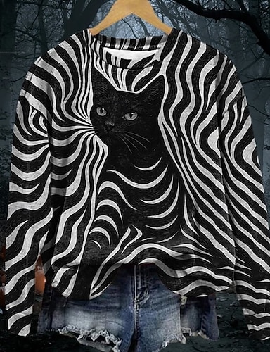 Női Pullover Pulóverek Cica Divat Utcai sikk Klasszikus Hosszú ujj Kerek Normál felsők Hétköznapi Nyomtatott Fehér Bíbor Tavasz Ősz