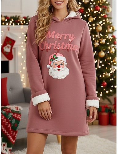 Női Pulóver Hoodie pulóver Mikulás Meleg Alkalmi Sherpa gyapjú Hosszú ujj Kapucni Hosszú felsők Utca Hétköznapi Szabadság Nyomtatott Sötétrózsaszín Medence Szürke Ősz Tél