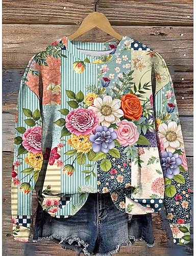Női Pulóver pulóver Virágos Grafika Alkalmi Hosszú ujj Terített nyak Normál felsők Otthon Munka Utca Medence Bíbor Barna Lóhere Sötétkék Tavasz Ősz Tél