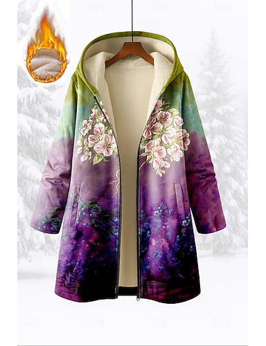 Női Cipzáras kapucnis pulóver Virágos Grafika Mértani Elegáns Meleg Punk Hosszú ujj Kapucni Hosszú felsők Otthon Munka Party estélyi viselet Kollázs Nyomtatott Bíbor Tavasz Ősz Tél