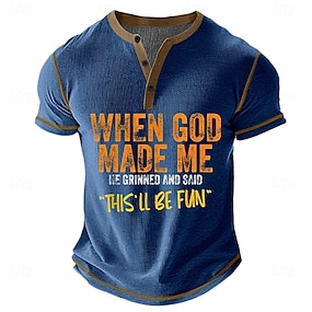 Férfi Vicces Grafikus Henley Rövid Ujjú T-Shirt "Amikor Isten megalkotott elmosolyodott és azt mondta ez szórakoztató lesz"