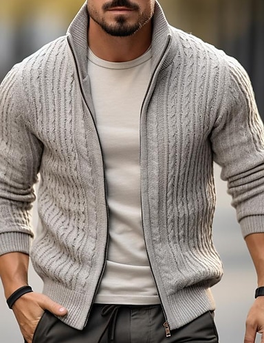 Férfi Pulóver Kardigán Bordázott Kötött Szokványos Kötött Állógallér Bemelegítők Modern Kortárs Hétköznapi viselet Alkalmi Ruházat Ősz & tél Fekete Világos szürke S M L