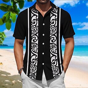 Szent Patrik Férfi Színes Linije Ing Gombos póló Rövid ujjú Művészi Alkalmi Kényelmes Szabadtéri Vakáció Utca Tavaszi nyár Állógallér Nyomtatás Fekete