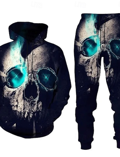 Mindszentek napja Férfi Koponya 2db 3D pulóver készletek Tracksuit Kapucnis pulóver Hosszú ujj Hosszú nadrág Kapucni Alkalmi Napi Sportruházat 3D nyomtatás Tavasz Ősz Tél Kék tó Ametiszt Kék