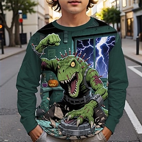 Mindszentek napja Fiú 3D Tök Dinoszaurus Póló Hosszú ujj Tavasz Ősz Divat Alap Gyerekek 4-12 év Terített nyak Szabadtéri Hétköznapi Napi Normál