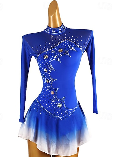 Kűrruha Női Lány Klizanje na ledu Ruhák Kék+Világoskék Kollázs Hüvelykujj bújtató Háló Spandex Nyúlós Edzés Gyakorlat Professzionális Kűrruhák Melegen tartani Kristály / Strassz Hosszú ujj