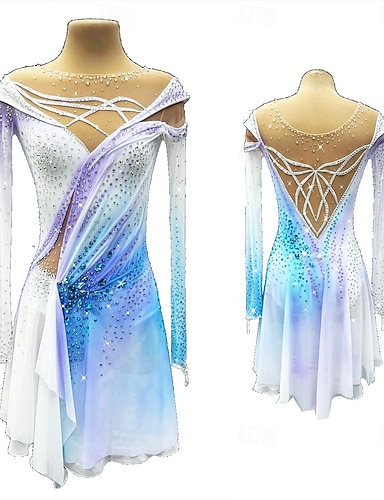 Kűrruha Női Lány Klizanje na ledu Ruhák Égszínkék Hüvelykujj bújtató Aszimmetrikus szegély Háló Nagy rugalmasságú Edzés Verseny Kűrruhák Klasszikus Kristály / Strassz Hosszú ujj Jégkorcsolyázás