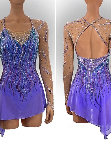 Kűrruha Női Lány Klizanje na ledu Ruhák Rózsaszín Kék Bíbor Nyúlós Edzés Verseny Kűrruhák Melegen tartani Kristály / Strassz Hosszú ujj Jégkorcsolyázás Műkorcsolyázás