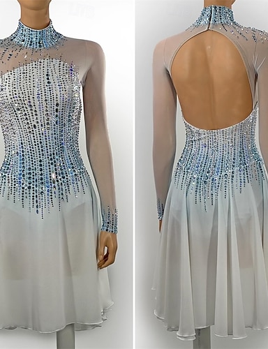 Kűrruha Női Lány Klizanje na ledu Ruhák Égszínkék-Fehér Kollázs Nyissa meg a Vissza elemet Háló Spandex Nagy rugalmasságú Edzés Verseny Kűrruhák Klasszikus Kristály / Strassz Hosszú ujj