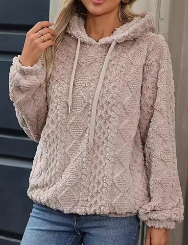 Női Pulóver Hoodie pulóver Sima Utcai sikk Alkalmi Hosszú ujj Kapucni Normál felsők Utca Szabadság Alkalmi Fekete Arcpír rózsaszín Khakizöld Bézs Ősz Tél