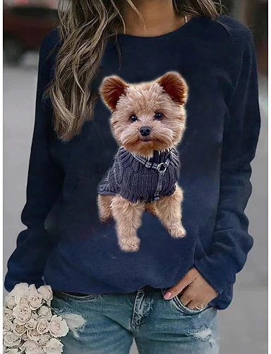 Női Extra méret Kutya Alap Hosszú ujj Kerek Kerek nyakkivágás Normál felsők Utca Hétköznapi Sötétkék Bíbor Lóhere Szürke Ősz & tél