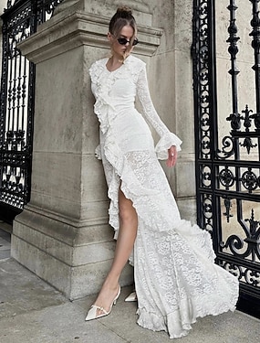 Női Maxiruha Hüvelyruha Buli Születésnap koktél Flare mandzsetta hüvely Parti Alkalmi Tengerpart Szabott Tömör szín Hosszú ujj V-alakú Fehér Tavasz Ősz